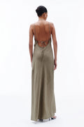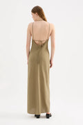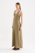 The Winfield Maxi Dress is made from a crinkle textured fabric which has a dry, lightweight hand feel. Cut on the bias, this silhouette drapes over the body softly and finishes at ankle length. Features include thin tie straps, low open back and a deep V-neckline.